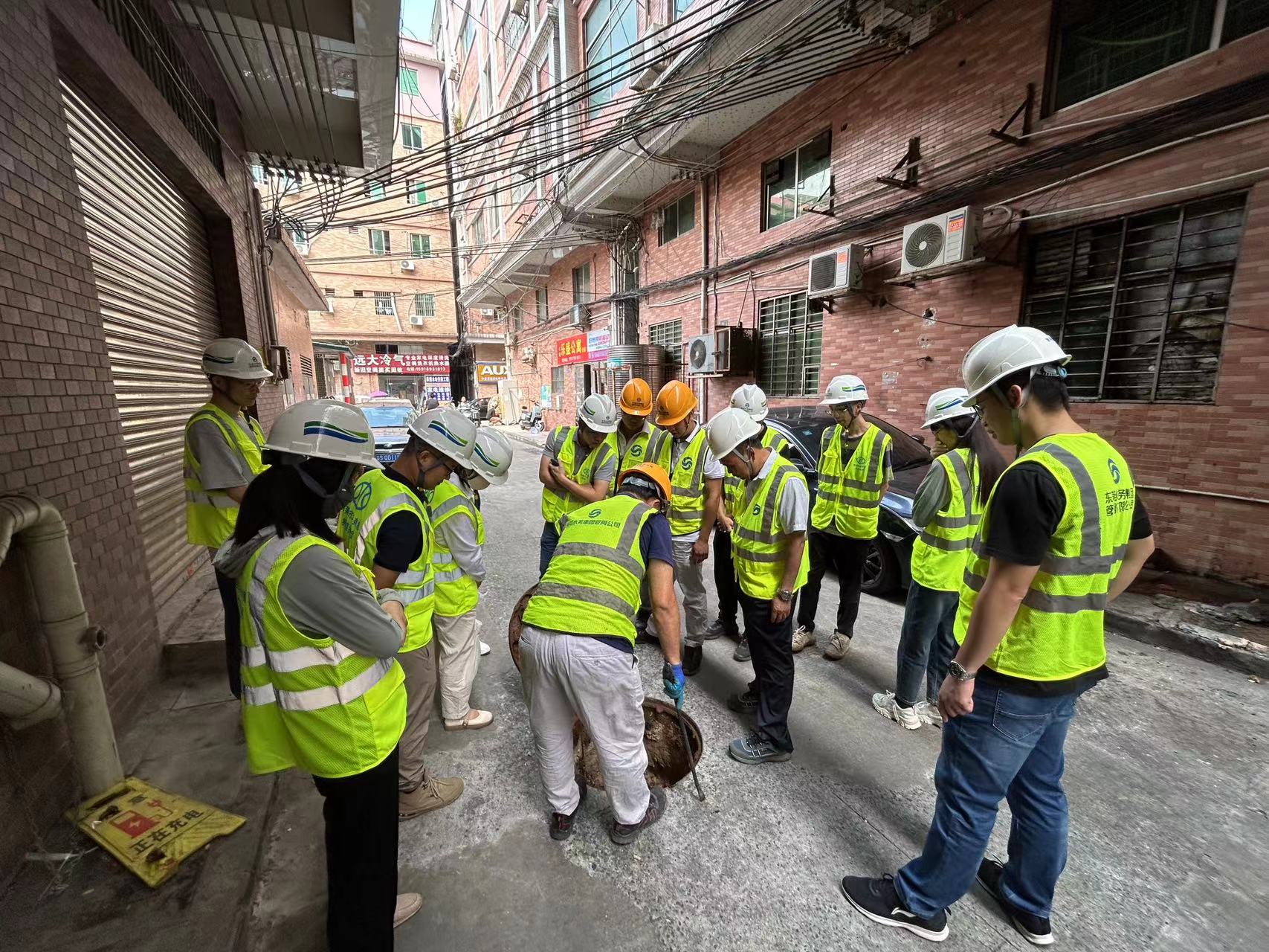 东莞的5、6月时值汛期,正是管网运维时间急、任务重、压力大的阶段,学员们在各分公司运维业务骨干的带领下,切身体验管网运维业务日晒雨淋的工作环境及汛期紧锣密鼓的工作节奏。