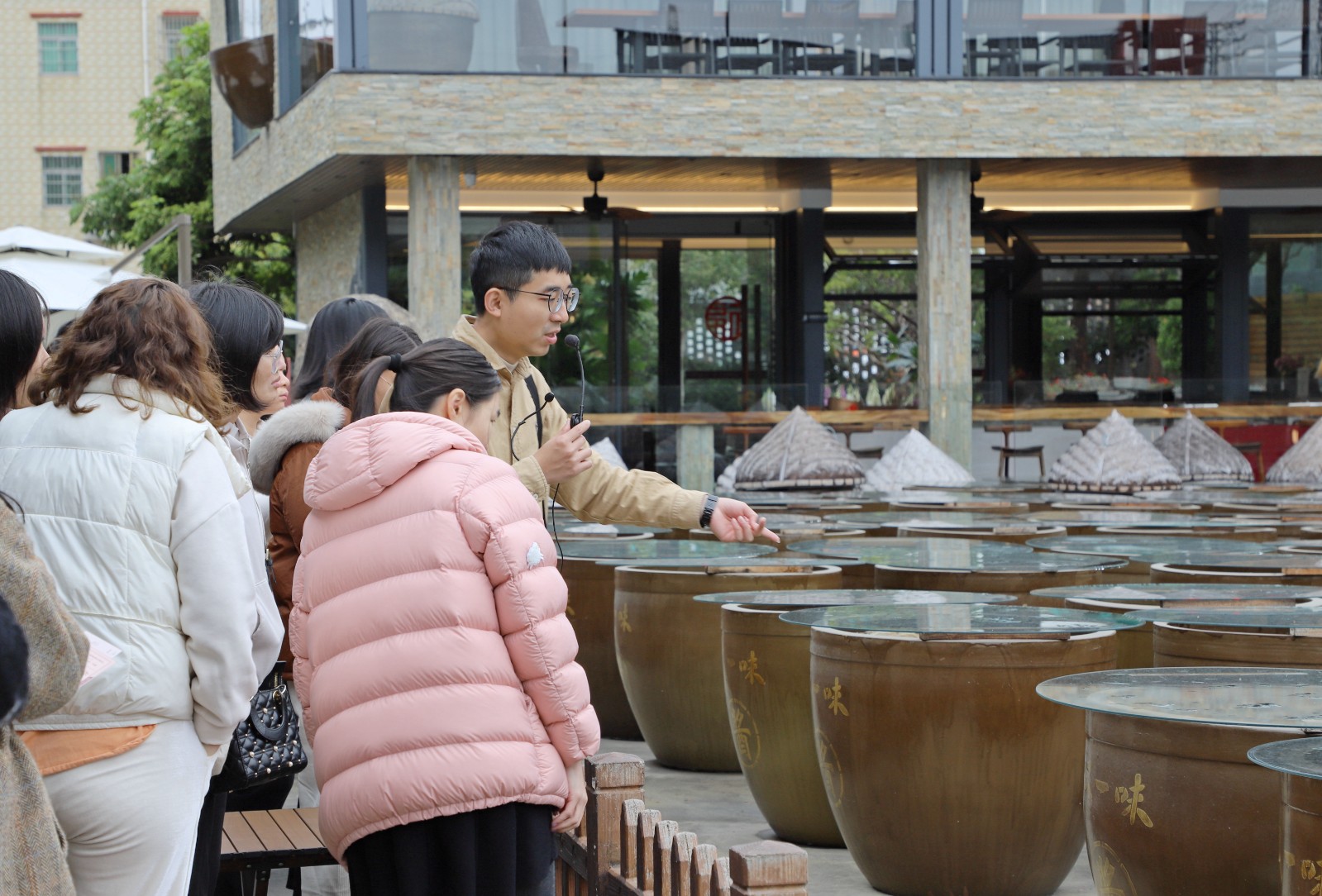 带着对沉香文化的满满回味,女职工们移步至弥漫着浓郁生活气息的非遗豆酱工坊,跟随讲解,参观了解豆酱制作工艺——从挑选饱满豆粒开始,蒸煮、拌曲、发酵……原本平凡无奇的黄豆在时间与匠心的双重催化下,悄然完成一场华丽蜕变,醇厚馥郁的酱香悠悠飘扬在空气中。
