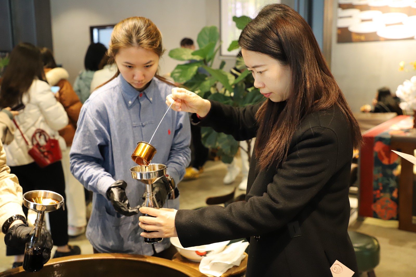 女职工们纷纷卷起袖子,兴致勃勃地加入到“打酱油”的体验环节,琥珀色的酱油缓缓倒入亲手挑选的瓶子,每一瓶都倾注了自己的热情与专注,成为独一无二、满载回忆的美味珍藏。
