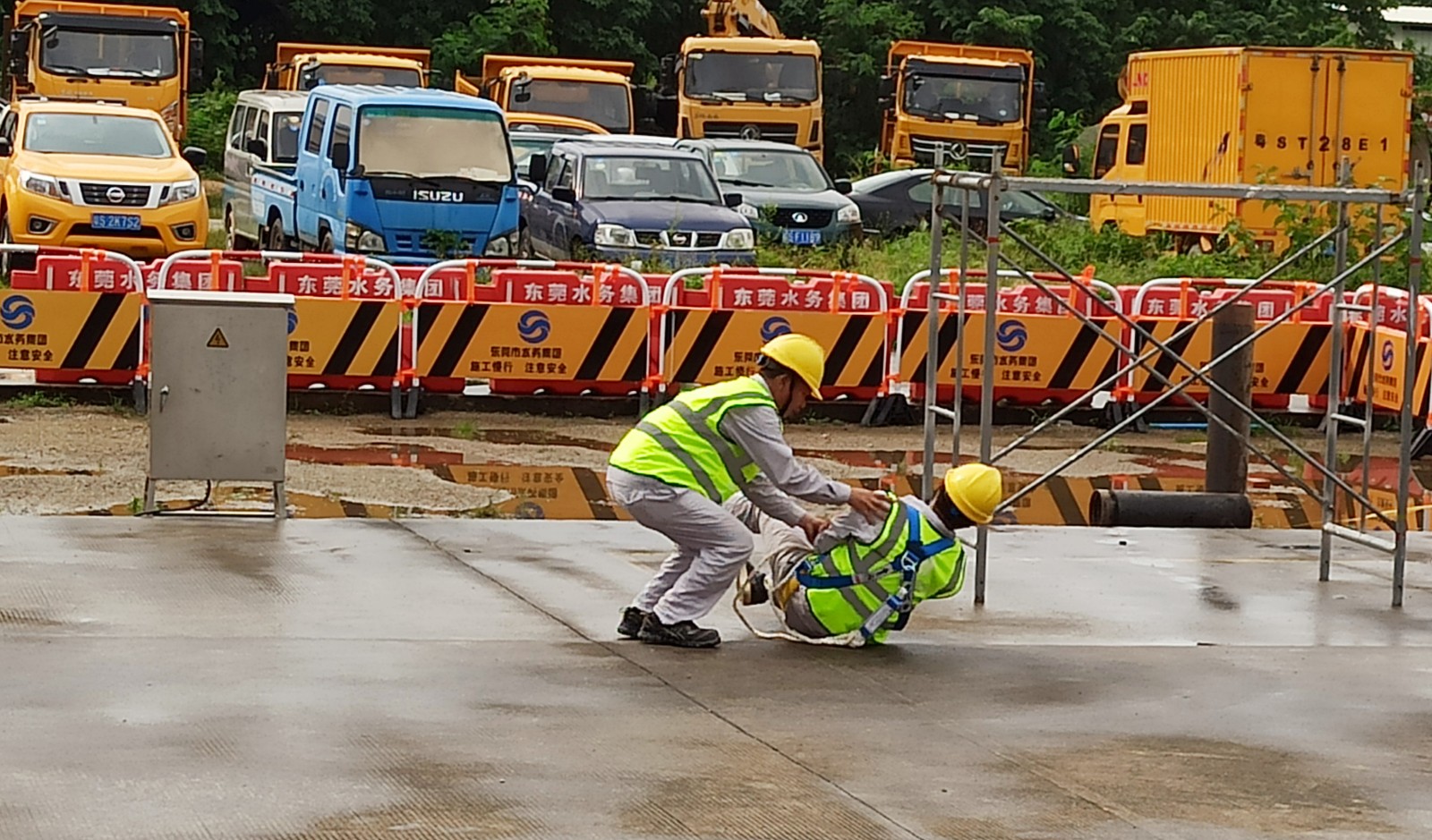 7月8日,工程公司在榴花坑办公点开展了高处坠落及触电事故应急演练,工程公司领导班子,各部室、分公司负责人及相关人员参加演练,并邀请了集团公司安全监管部、供水公司领导及相关人员参加。