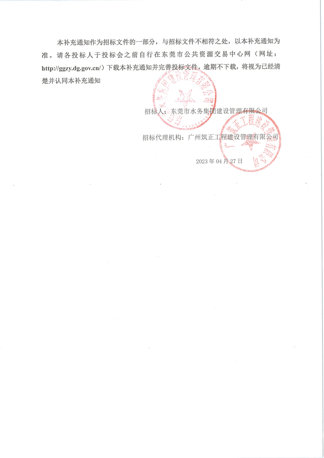 东莞市供水设施更新改造项目-茶山镇供水管网连通工程监理 补充通知一