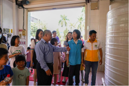 活动首先向学员们们介绍了西湖水厂,西湖水厂位于东莞市石龙镇西湖社区,占地面积约3.1万平方米,于1994年1月建成投产,设计规模为4万立方米/日,供水范围主要为石龙镇西湖村,服务人口约3.5万人。目前,水厂日均供水量约1.5万立方米/日,投产至今,出厂水水质均满足现行国家《生活饮用水卫生标准》要求。